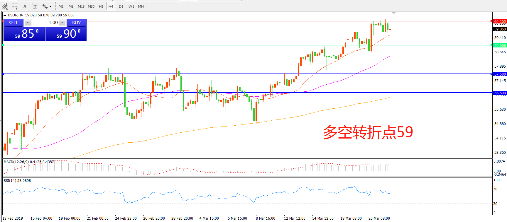 交易策略:在59.00之上看涨,目标60.00     62.00
