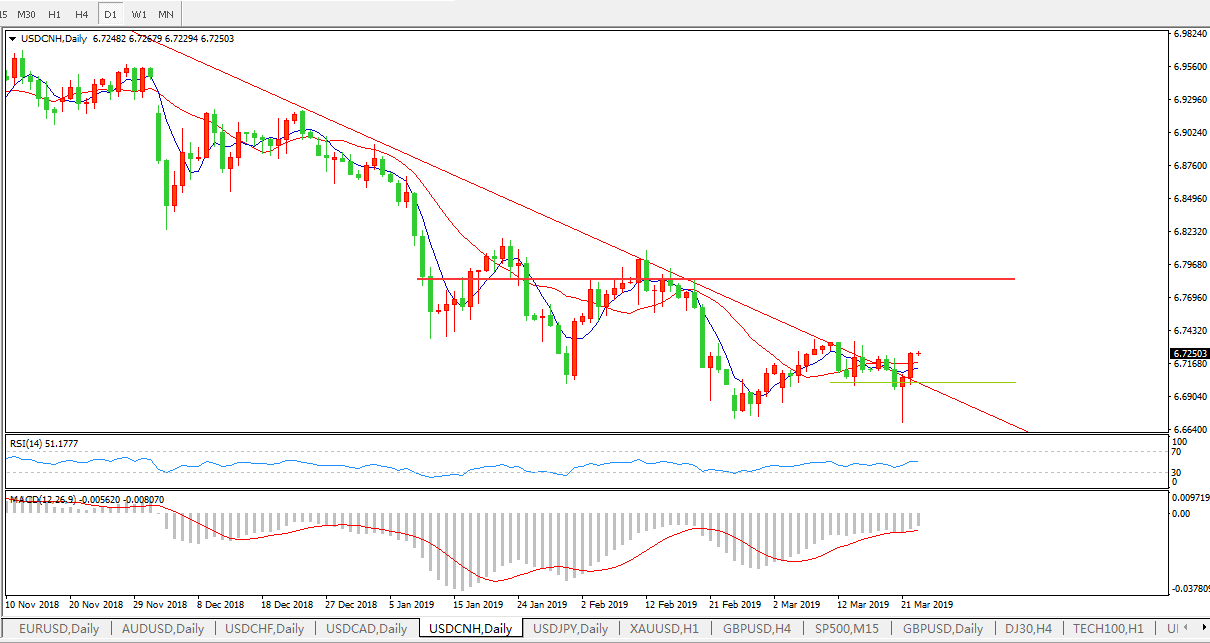 美元兑人民币USDCNH 日线图:
