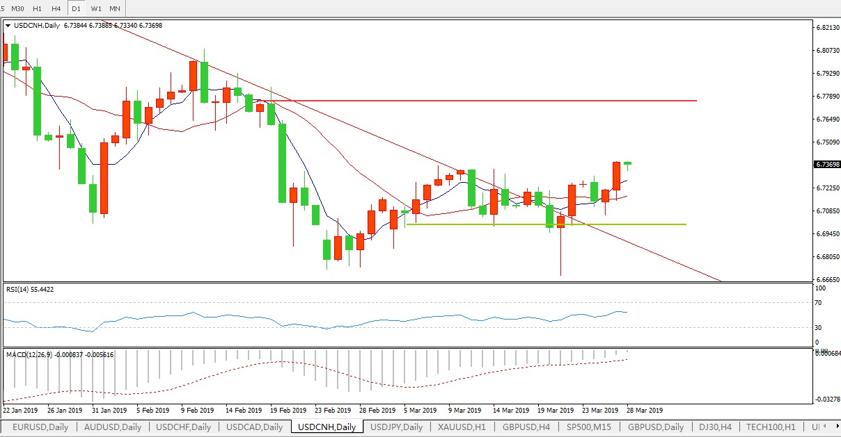 美元兑人民币USDCNH 日线图:
