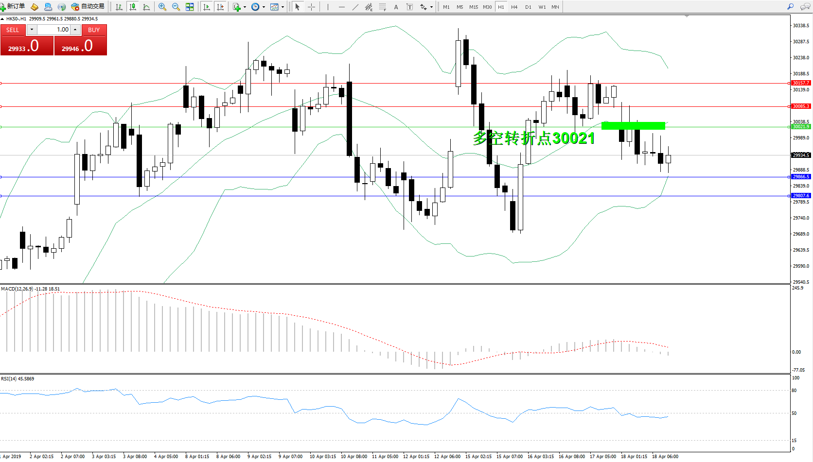 恒指HK50 ——1小时K线图显示: