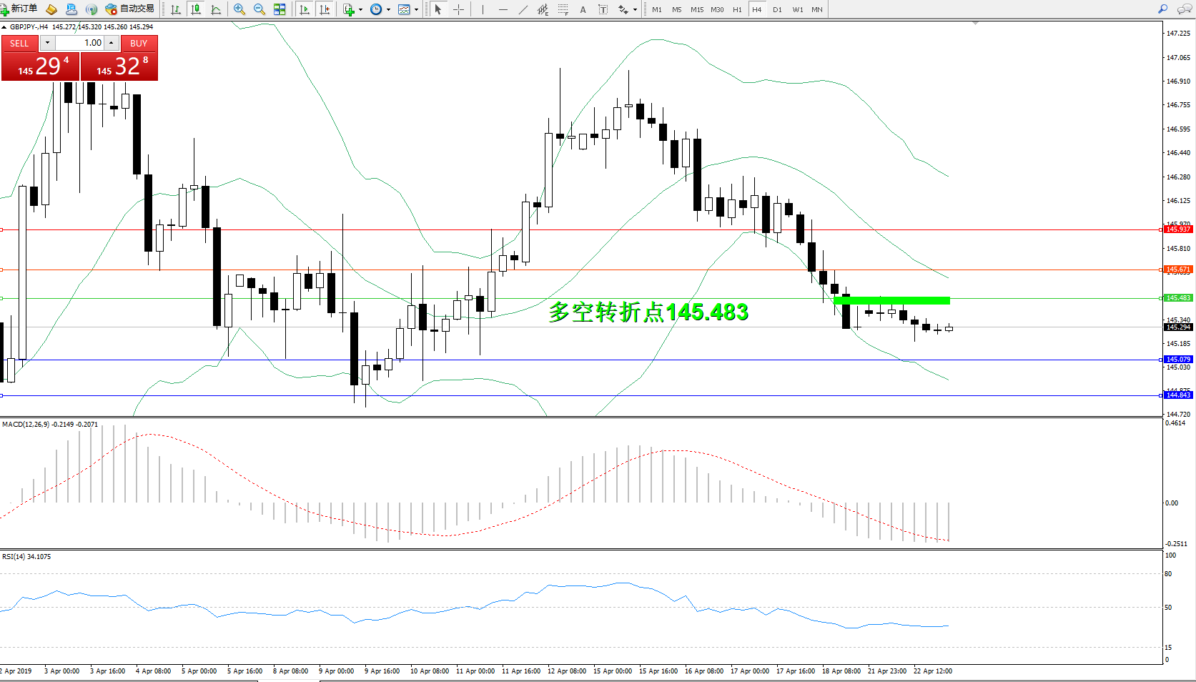 交易策略:145.483下方看跌,目标145.079144.843