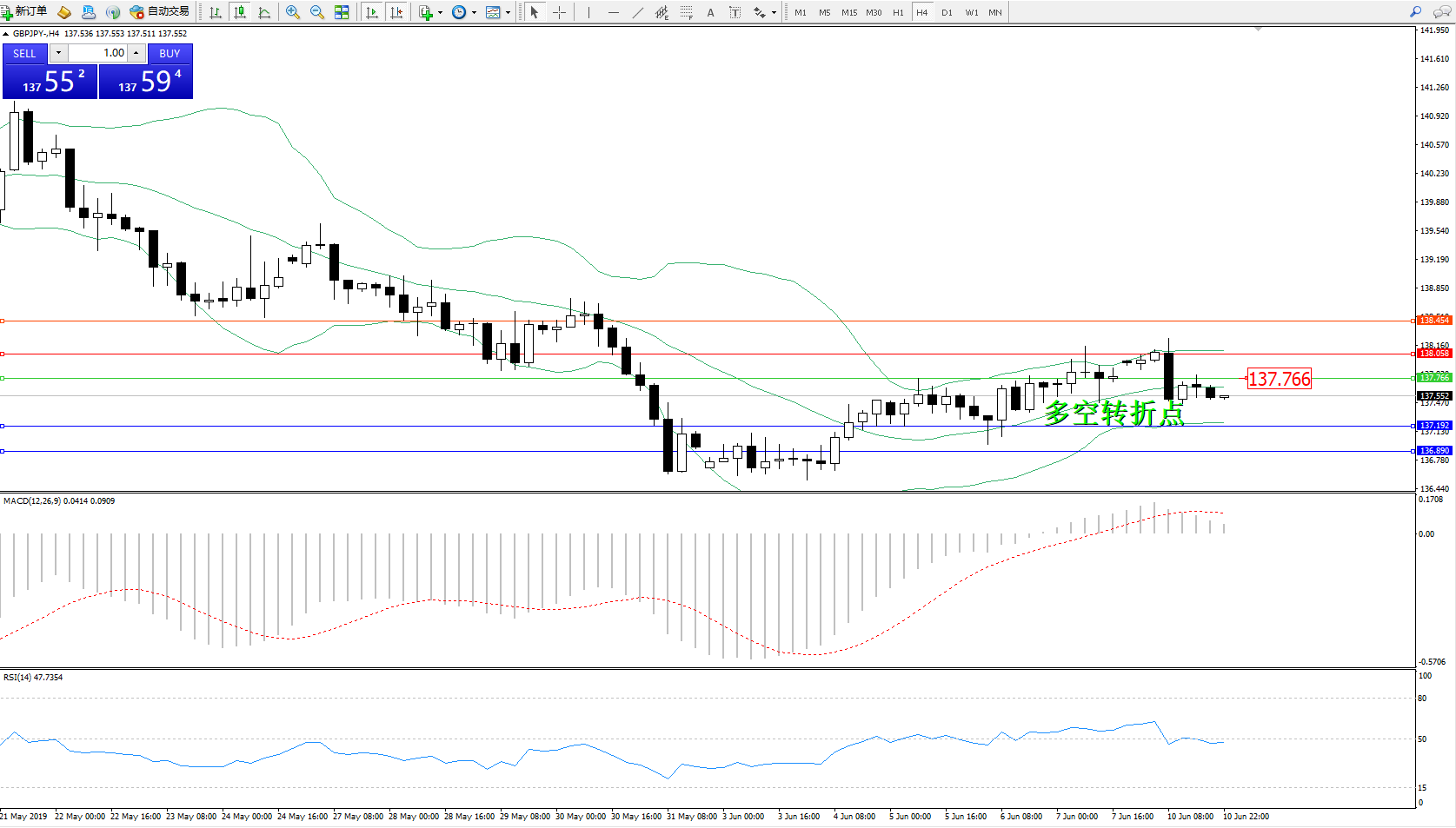 交易策略:137.766下方看跌,目标137.192136.890