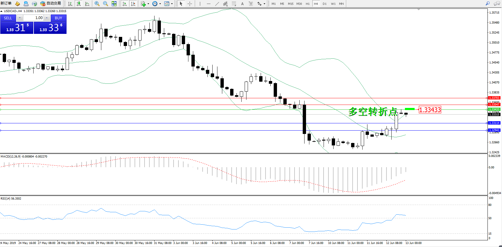 美元加元USDCAD——4小时K线图显示:
