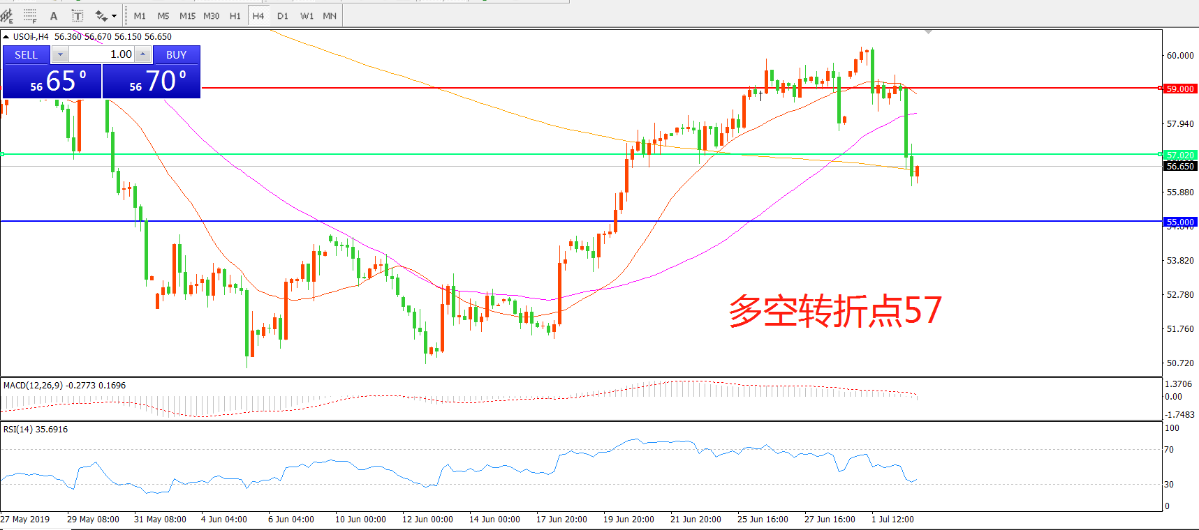 交易策略:在57.00之下看跌,目标55.00    50.00