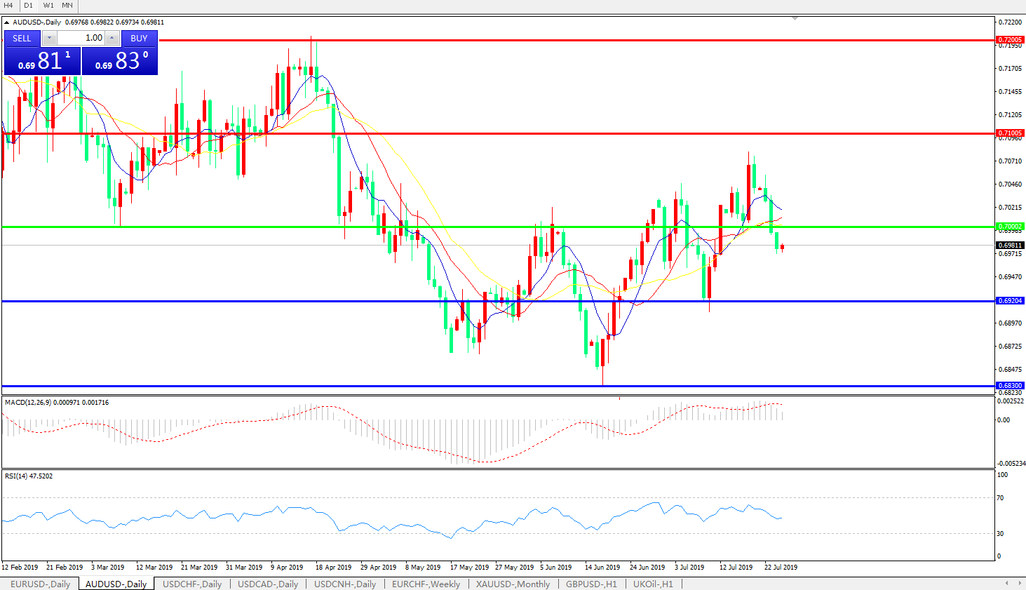 交易策略:0.7000下方看跌,目标0.6920、0.6830