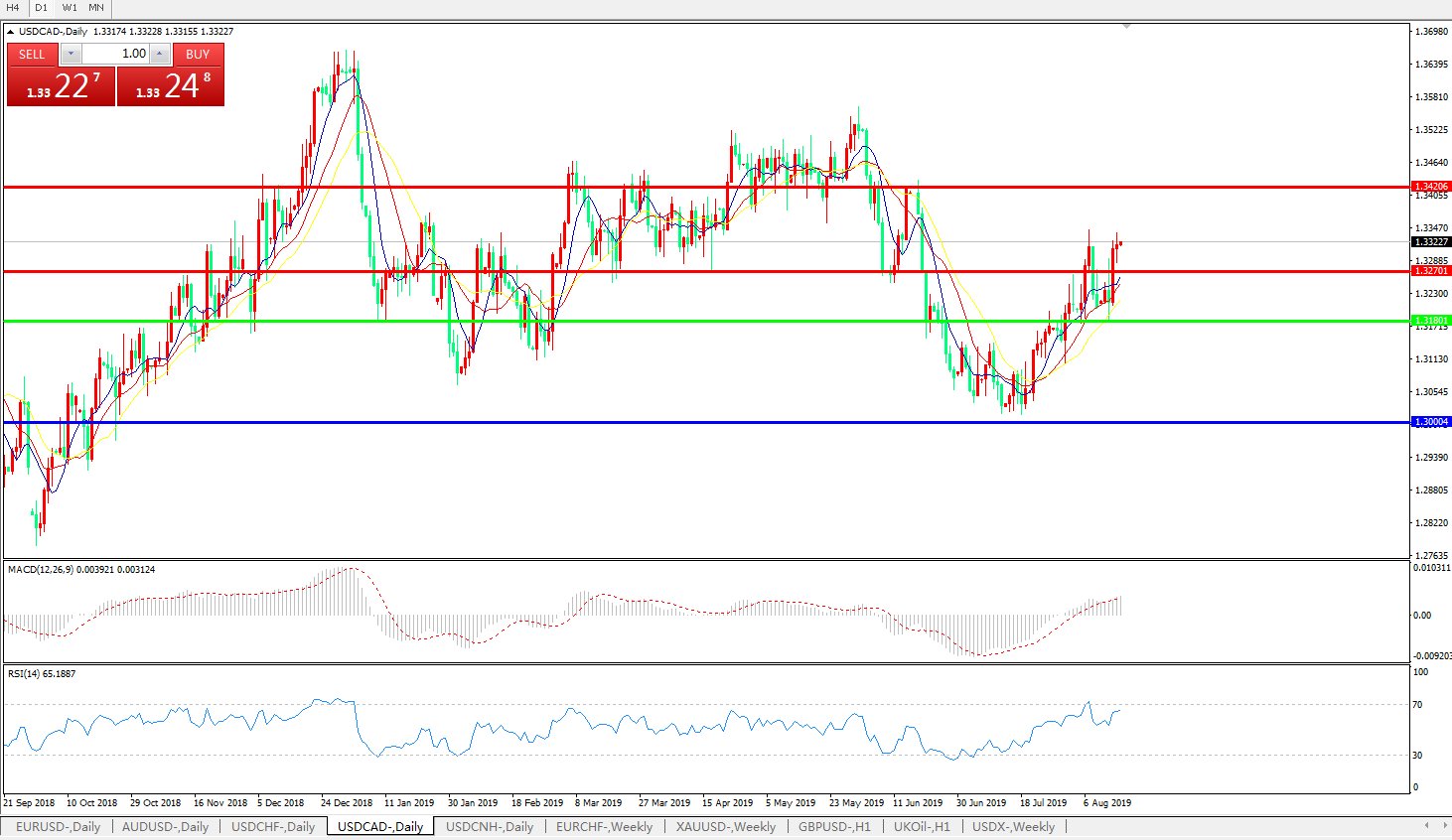 美元兑加元在周四延续涨势,日内最高触及1.3333,创87日以来逾一周新高,原因一方面在于美国数据向好叠加避险美元买需共同助推美元指数持稳,另一方面则是因为原油价格继续承压,对产油国货币加元构成了连带拖累;日内备受瞩目的美国零售销售数据表现大幅好于预期,影响改过了加拿大同样向好的ADP就业数据,这推动者美元兑加元延续着过去一个月来的反弹升势。与此同时,国际油价虽然日内几经震荡,但在全球需求阴霾下,总体偏向下行的格局依旧未改。这也连累了加元的走势