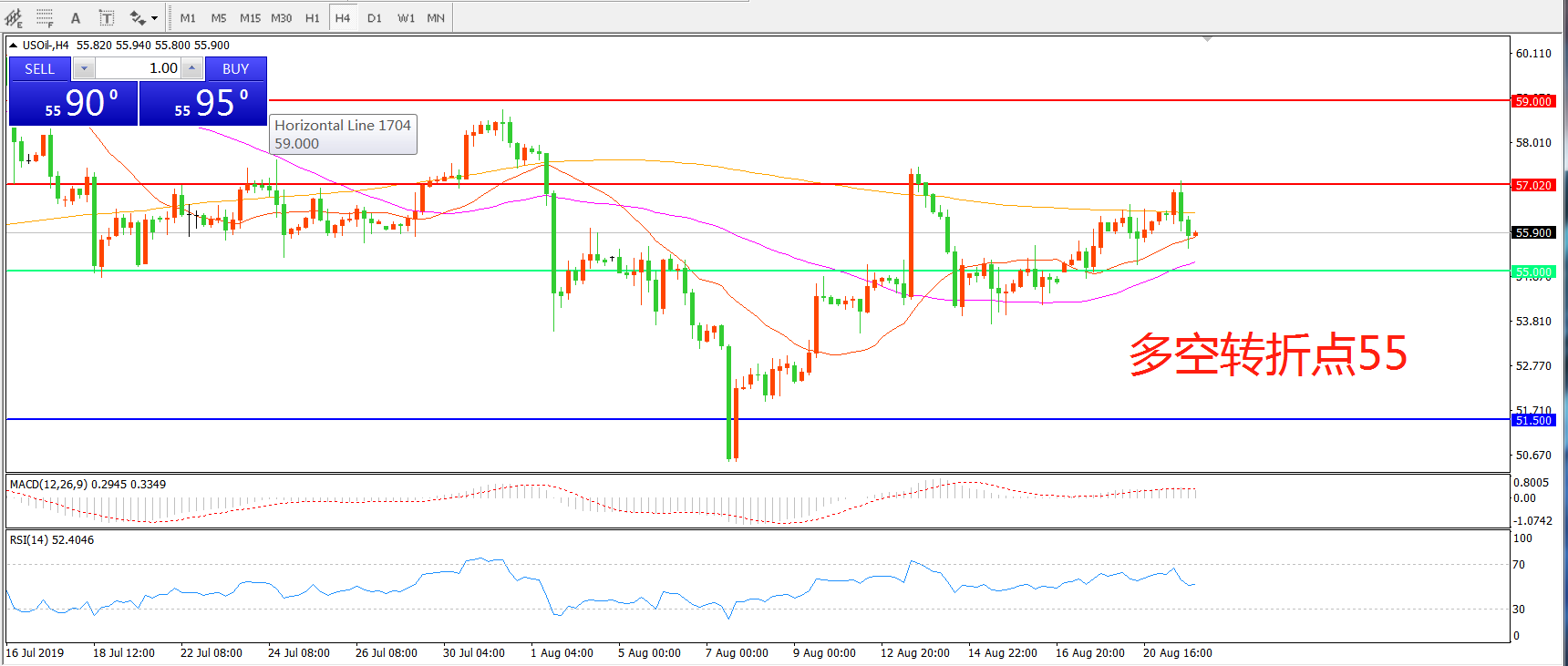 交易策略:在55.00 之上看涨,目标57.00   59.00