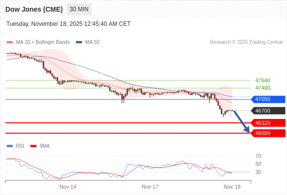 在 47050 之下,看跌,目标价位为 46320 ,然后为 46000 。