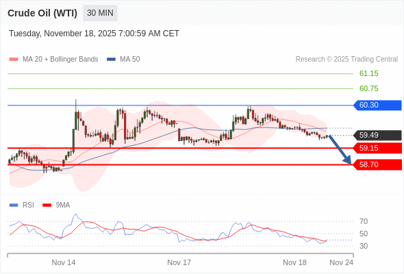 在 60.30 之下,看跌,目标价位为 59.15 ,然后为 58.70 。