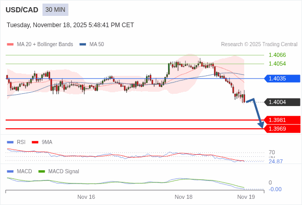 交易策略: 看跌,在 1.4035 之下。
