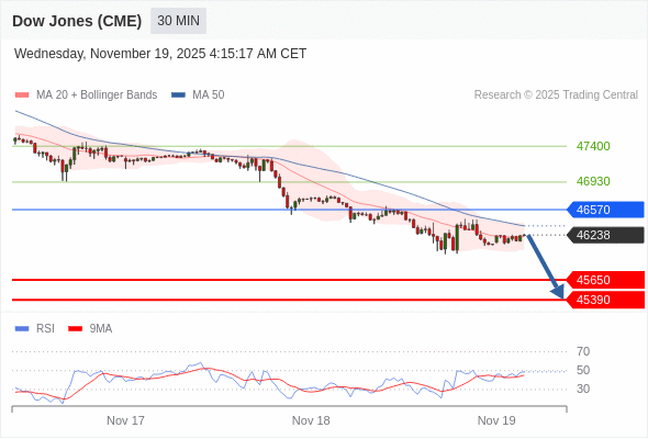 在 46570 之下,看跌,目标价位为 45650 ,然后为 45390 。