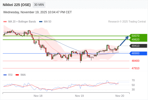 在 48900 之上,看涨,目标价位为 49820 ,然后为 50070 。