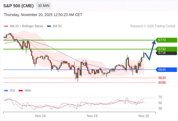 在 6645 之上,看涨,目标价位为 6732 ,然后为 6770 。