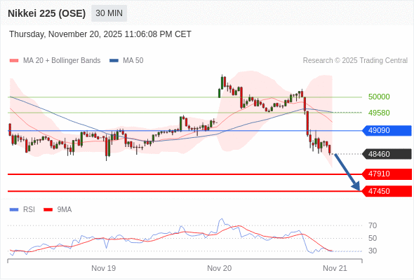 在 49090 之下,看跌,目标价位为 47910 ,然后为 47450 。