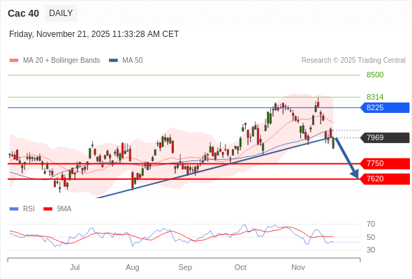 在 8225 之下,看跌,目标价位为 7750 ,然后为 7620 。