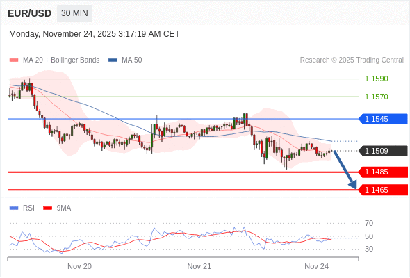 在 1.1545 之下,看跌,目标价位为 1.1485 ,然后为 1.1465 。
