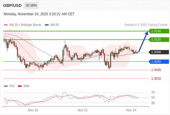 在 1.3060 之上,看涨,目标价位为 1.3125 ,然后为 1.3150 。