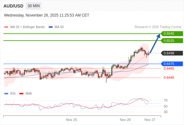在 0.6475 之上,看涨,目标价位为 0.6525 ,然后为 0.6540 。
