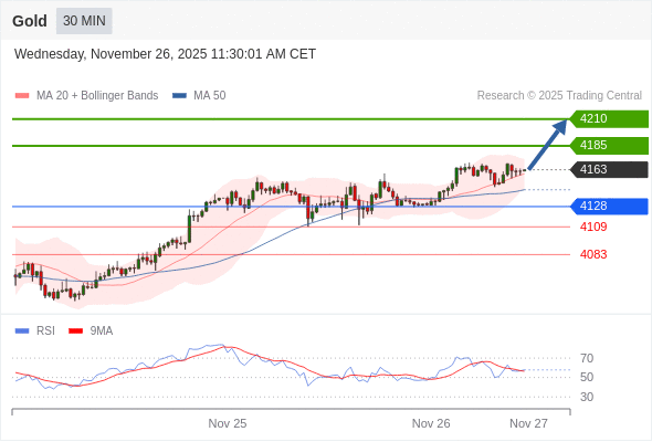 在 4128 之上,看涨,目标价位为 4185 ,然后为 4210 。