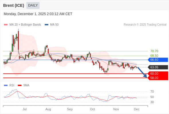 交易策略: 在 66.60 之下,看跌,目标价位为 60.00 ,然后为 58.00 。
