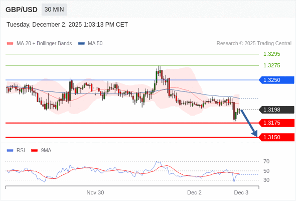 交易策略: 在 1.3250 之下,看跌,目标价位为 1.3175 ,然后为 1.3150 。