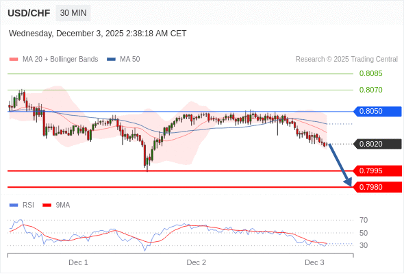 在 0.8050 之下,看跌,目标价位为 0.7995 ,然后为 0.7980 。