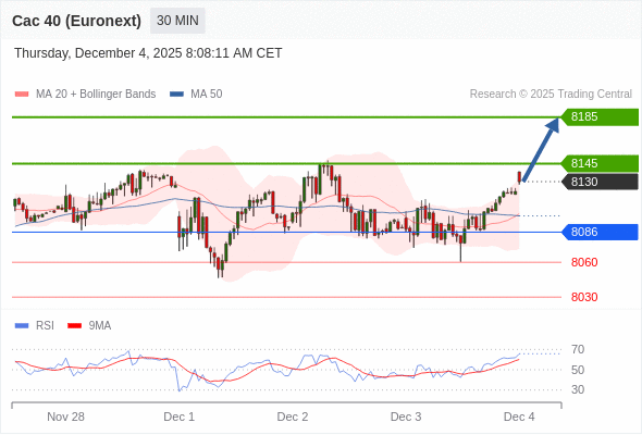 在 8086 之上,看涨,目标价位为 8145 ,然后为 8185 。