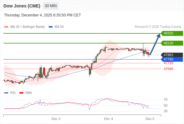 在 47790 之上,看涨,目标价位为 48130 ,然后为 48335 。