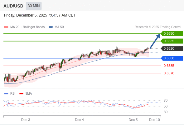 在 0.6600 之上,看涨,目标价位为 0.6635 ,然后为 0.6650 。