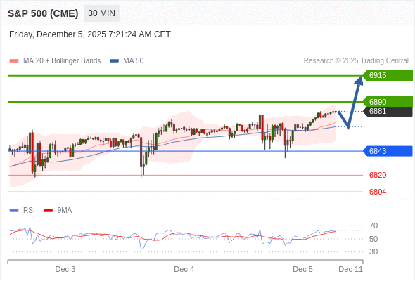 在 6843 之上,看涨,目标价位为 6890 ,然后为 6915 。