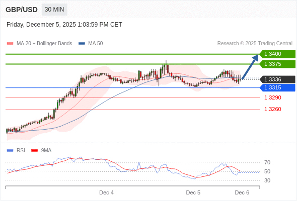 在 1.3315 之上,看涨,目标价位为 1.3375 ,然后为 1.3400 。