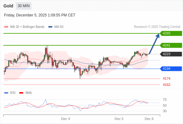 在 4194 之上,看涨,目标价位为 4241 ,然后为 4265 。