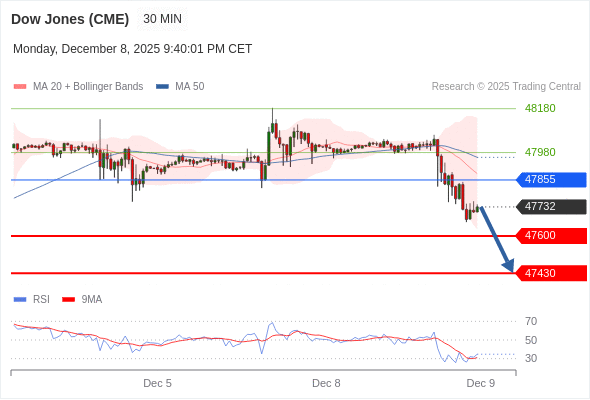 在 47855 之下,看跌,目标价位为 47600 ,然后为 47430 。
