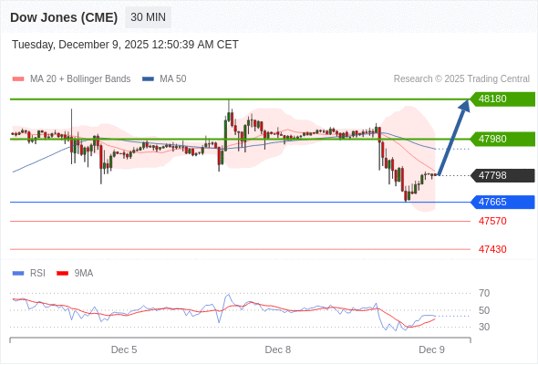 在 47665 之上,看涨,目标价位为 47980 ,然后为 48180 。