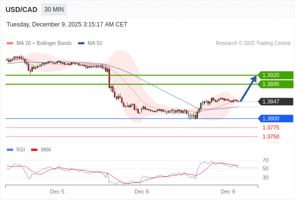 在 1.3800 之上,看涨,目标价位为 1.3895 ,然后为 1.3920 。