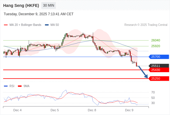 交易策略: 在 25700 之下,看跌,目标价位为 25430 ,然后为 25250 。