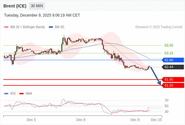 在 62.80 之下,看跌,目标价位为 61.80 ,然后为 61.50 。