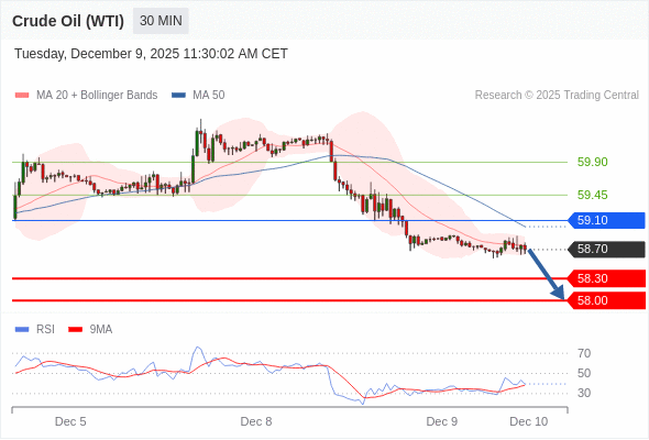 在 59.10 之下,看跌,目标价位为 58.30 ,然后为 58.00 。