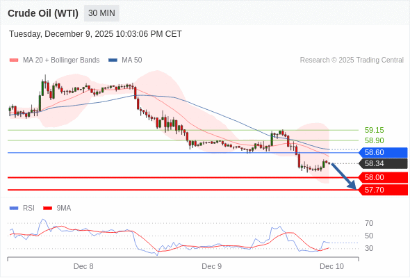 交易策略: 在 58.60 之下,看跌,目标价位为 58.00 ,然后为 57.70 。