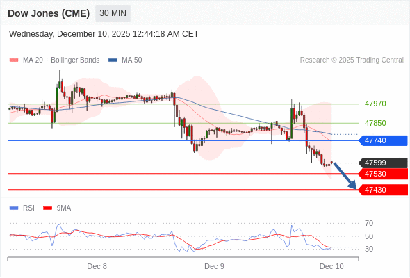 在 47740 之下,看跌,目标价位为 47530 ,然后为 47430 。