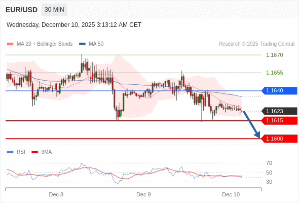 交易策略: 在 1.1640 之下,看跌,目标价位为 1.1615 ,然后为 1.1600 。