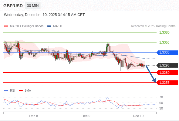 在 1.3330 之下,看跌,目标价位为 1.3280 ,然后为 1.3255 。