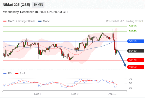 在 50750 之下,看跌,目标价位为 50170 ,然后为 49960 。