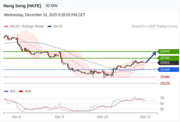 在 25460 之上,看涨,目标价位为 25700 ,然后为 25840 。