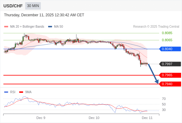 在 0.8040 之下,看跌,目标价位为 0.7965 ,然后为 0.7940 。