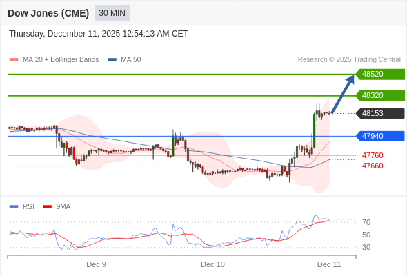 在 47940 之上,看涨,目标价位为 48320 ,然后为 48520 。