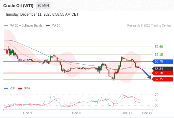 在 58.75 之下,看跌,目标价位为 58.10 ,然后为 57.75 。