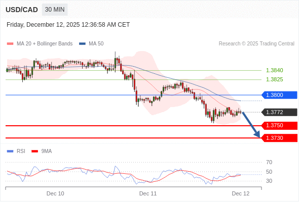 在 1.3800 之下,看跌,目标价位为 1.3750 ,然后为 1.3730 。