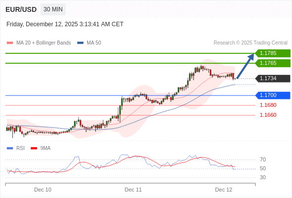 在 1.1700 之上,看涨,目标价位为 1.1765 ,然后为 1.1785 。