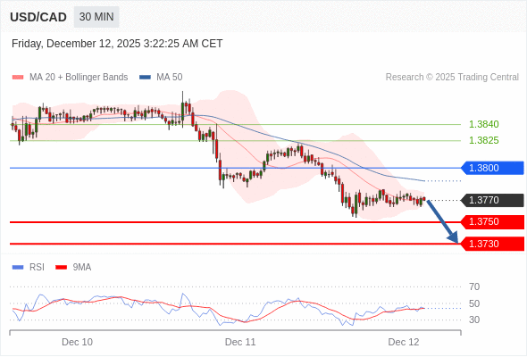 美元/加元 当日内: 期待1.3750。